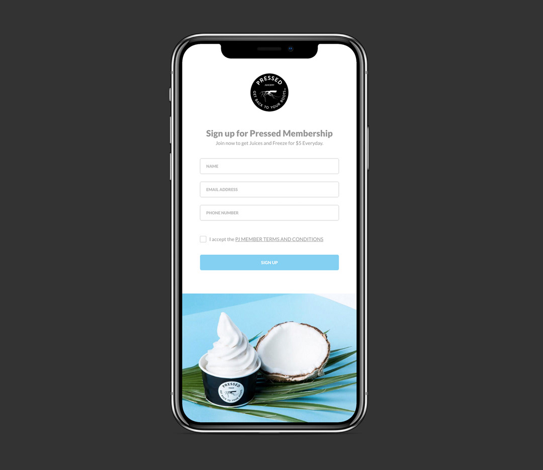 Pressed Juicery Login Screen